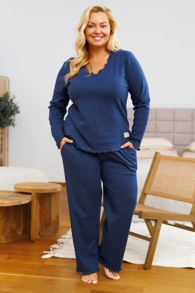 Piżama plus size z długim rękawem – subtelny granat i wygoda na co dzień