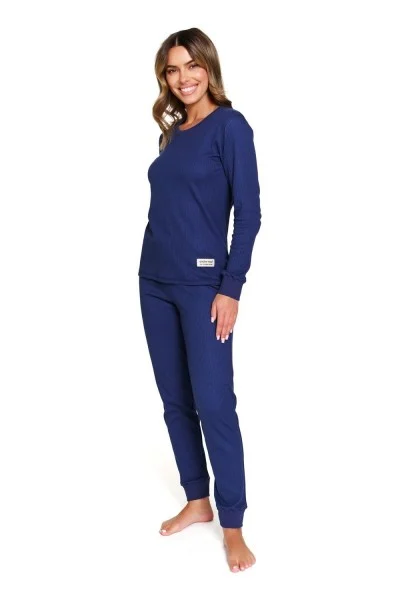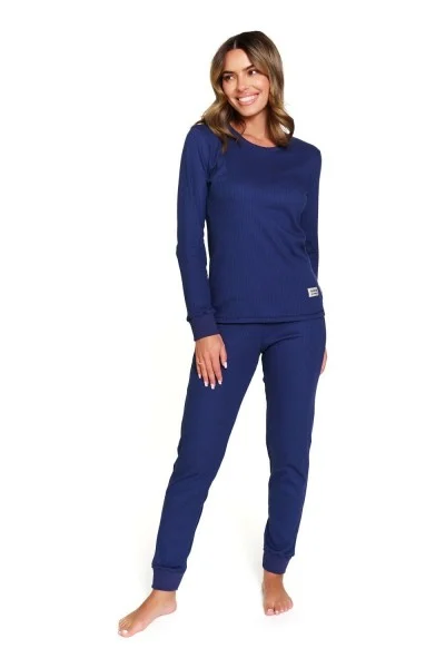 Granatowa piżama damska z prążkowanej dzianiny – klasyka w nowoczesnym wydaniu